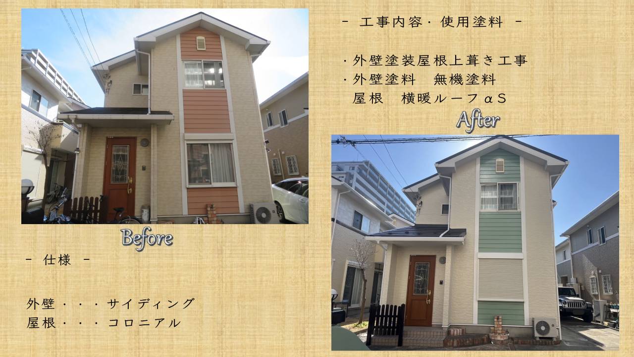 <”外壁塗装屋根上葺き工事”の施工事例>